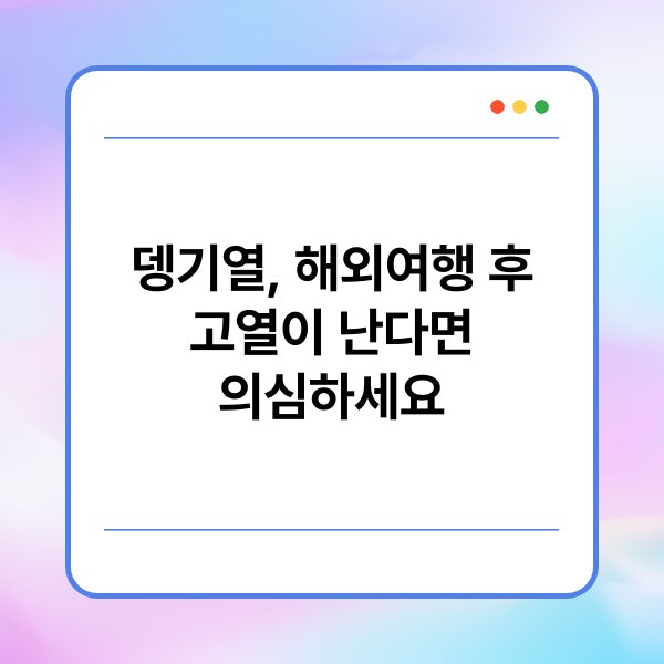 여행 후 고열이 발생하면 즉시 의료기관을 방문해야 합니다. 고열과 함께 두통, 근육통, 발진 등의 증상이 나타날 수 있습니다. 이러한 증상은 뎅기열의 주요 증상으로, 조기 진단 및 치료가 필요합니다. 따라서 해외여행 후에는 자신의 건강 상태를 면밀히 관찰해야 합니다.