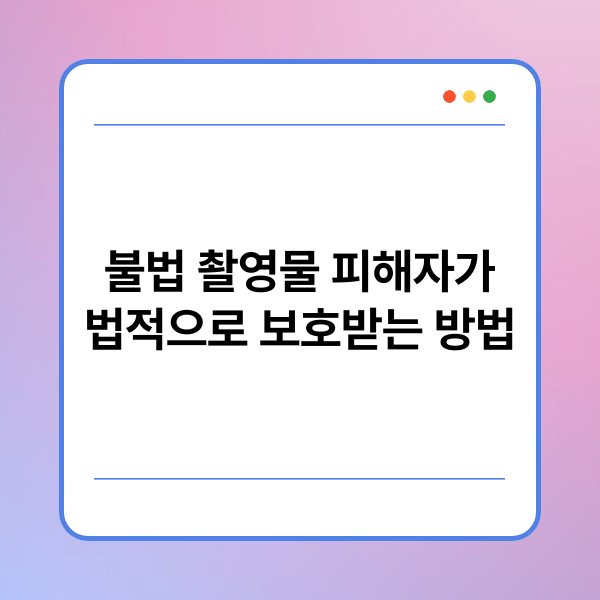 피해자 보호법은 불법 촬영물 피해자의 권리를 보장하기 위한 법적 장치입니다. 이 법은 피해자가 범죄로 인해 입은 피해를 회복할 수 있도록 지원하는 내용을 담고 있습니다. 이를 통해 피해자는 법적 구제를 받을 수 있는 권리를 강화받습니다.