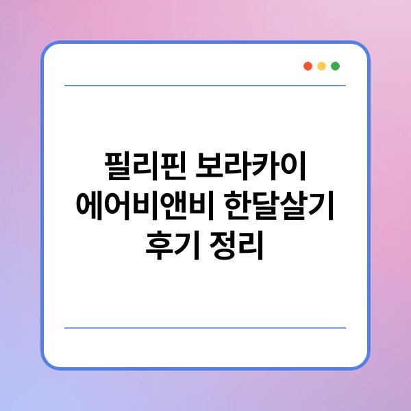 필리핀 보라카이는 아름다운 해변과 다양한 액티비티로 유명합니다. 최근 에어비앤비를 통해 한 달 살기를 경험한 이들이 많아지고 있습니다. 이 글에서는 보라카이에서의 한 달 살기의 장점과 유의사항을 정리합니다. 다양한 숙소 옵션과 비용, 현지 생활에 대한 정보도 포함되어 있습니다. 필리핀 보라카이 에어비앤비 한달살기에 대한 자세한 후기를 통해 유용한 정보를 제공하고자 합니다.